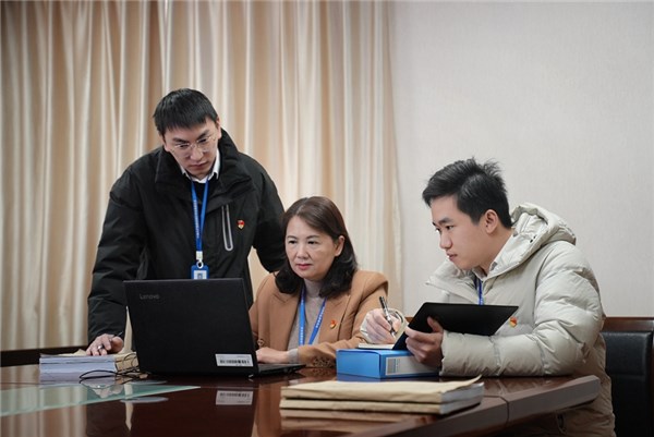 图为侯柳玉(中)正在指导青年纪检监察干部办案。姚瑶 摄
