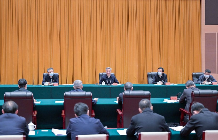 3月19日至21日,中共中央政治局常委、中央纪委书记李希到湖北调研。这是3月21日,李希主持召开部分省市纪委书记座谈会。新华社记者 岳月伟 摄