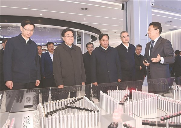 3月22日,由江苏省委书记信长星,江苏省委副书记、省长许昆林率领的江苏省党政代表团在安徽省委书记韩俊,省委副书记、省长王清宪陪同下,参观考察安徽创新馆。 杨 竹 摄