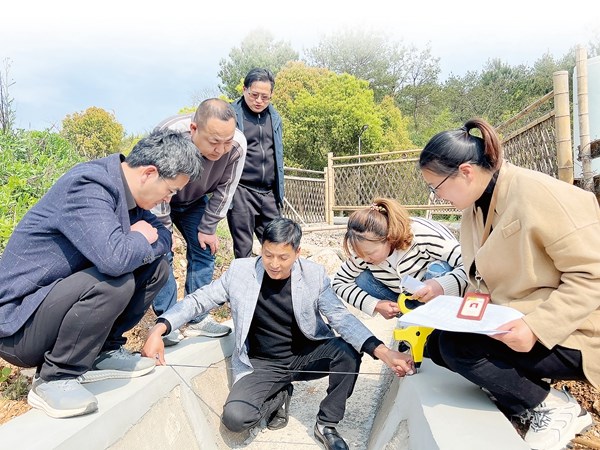 浙江省长兴县小浦镇纪委紧盯工程建设领域和招投标方面可能存在的问题,镇、村、民联动联查,打造村民放心工程。图为纪检干部参与防洪渠整治工程验收。沈俊辉 摄