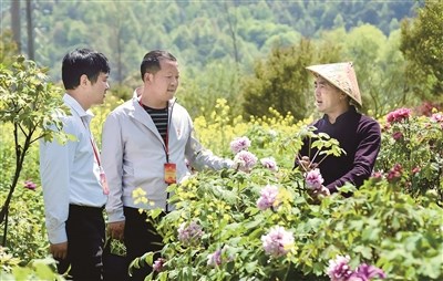 近日,安徽省宁国市委第一巡察组工作人员来到该市南极乡田间地头,了解群众实际困难、搜集民情民意。图为巡察组工作人员走访南极乡牡丹种植户。彭劝 摄