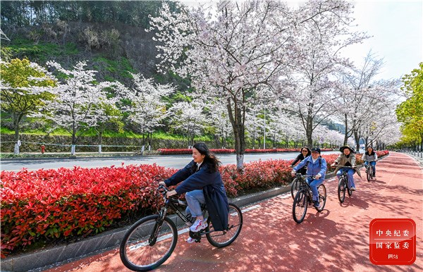 春回大地,正是踏青游玩好时节。在千岛湖环湖绿道上,市民结伴骑行游玩尽享运动的快乐。(杭州市淳安县纪委监委供 杨波 摄)