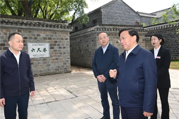 六尺巷形成于清康熙年间,“让他三尺又何妨”充分体现“谦和礼让、知进退、和为贵”的中国传统治理智慧。上午,韩俊来到六尺巷,详细了解历史渊源,察看牌坊和照壁,听取“新时代六尺巷工作法”介绍。他指出,“新时代六尺巷工作法”是金字招牌,经过多年实践,形成了以“党建领事法、礼让和事法、村民说事法、多元解事法、网格管事法、群力防事法”为基本内容的基层善治品牌,要把这一基层治理品牌在全省推得更广、叫得更响、擦得更亮。要健全网格化管理、精细化服务、信息化支撑的基层治理平台,推动形成党组织领导的共建共治共享的城乡基层治理新格局。