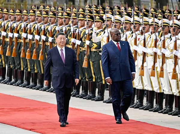 习近平指出,中刚两国在争取民族解放运动和反对殖民侵略的历史进程中建立了深厚传统友谊,是拥有广泛共同语言、并肩同行的战略伙伴。近年来,双方各领域合作成果丰硕,中国连续多年成为刚果(金)最大贸易伙伴和最大外资来源国,双方已经结成紧密的利益共同体和命运共同体。中国式现代化的成功经验表明,发展中国家有权利也有能力探索符合本国国情的现代化道路。中方愿同刚果(金)加强发展战略对接,在发展振兴的道路上相互支持、共谋合作、共促发展、共同进步。相信中国高质量发展将为刚果(金)提供更多合作机遇和更广阔市场,推动双边关系得到更大发展。
