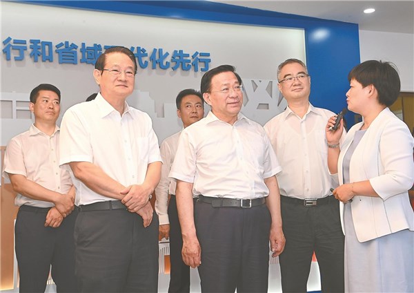 7月12日,省委书记韩俊、省长王清宪率安徽省党政代表团,在浙江省委书记易炼红等陪同下,实地考察杭州市钱塘区白杨街道邻里社区文化家园。 本报记者 杨 竹 摄