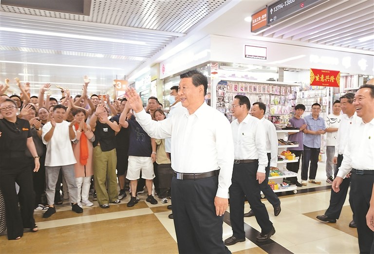 9月20日至21日,中共中央总书记、国家主席、中央军委主席习近平在浙江考察。这是20日上午,习近平在义乌国际商贸城考察时,同商户亲切交流。新华社记者 李学仁 摄