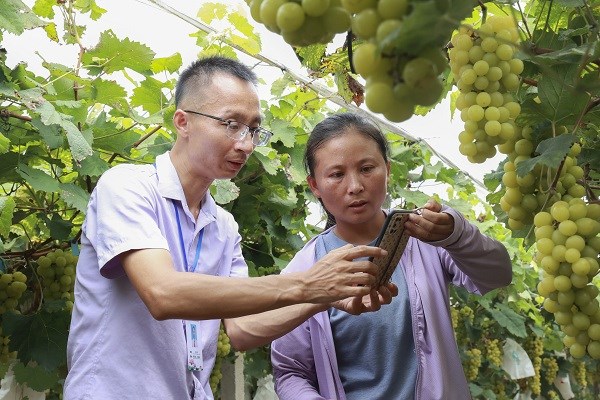 广西壮族自治区柳州市柳江区纪委监委发挥廉情监督员作用,收集社情民意,将监督“探头”延伸至田间地头。图为该区百朋镇纪委干部在向种植户介绍在“微权力e监督”平台如何查看产业奖补发放、监督村委会工作。(广西壮族自治区柳州市柳江区纪委监委 刘玉钰 摄)