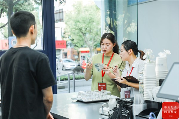 浙江省海宁市严查隐形变异“四风”问题,针对当前年轻干部喝奶茶、咖啡较多的现象,组织开展违规收送饮料券卡、公款购卡送卡等检查。图为该市海洲街道纪委在咖啡馆了解是否存在违规收送、使用券卡情况。(浙江省海宁市纪委监委供 王磊 摄)