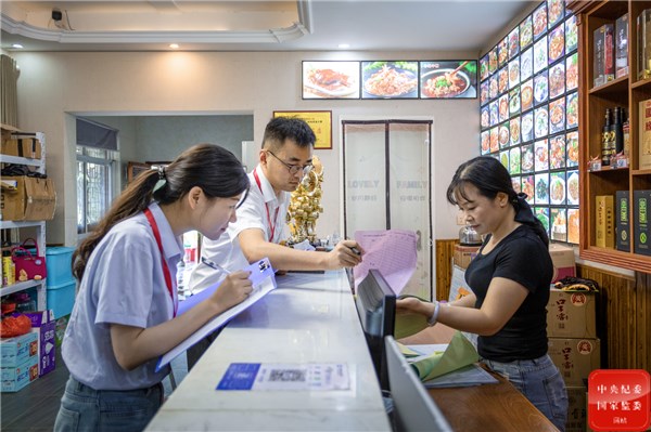 河南省漯河市郾城区纪委监委成立专项监督检查组,对节日“四风”问题开展明察暗访,从严查处顶风违纪行为。图为该区纪检监察干部在辖区某超市开展检查的场景。(河南省漯河市郾城区纪委监委供 王晓 摄)