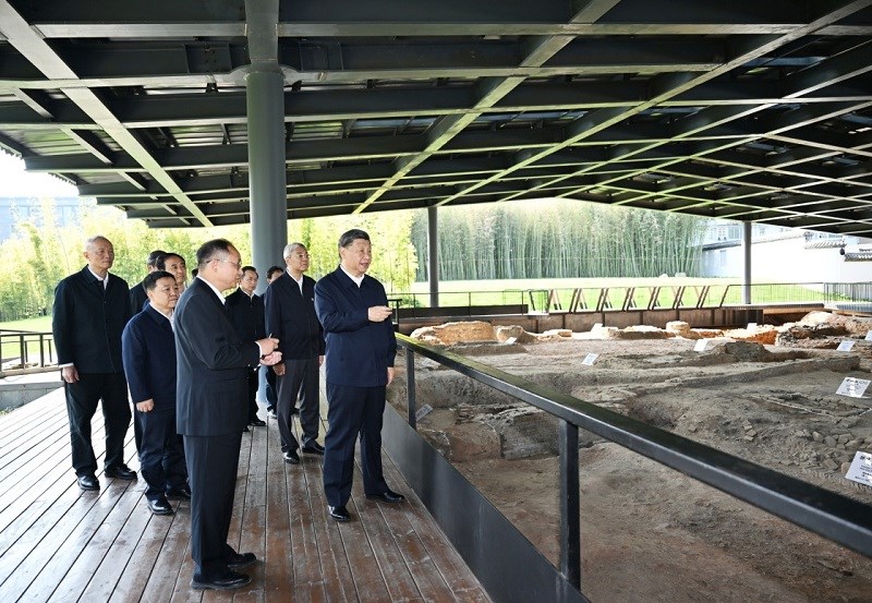 10月10日至13日,中共中央总书记、国家主席、中央军委主席习近平在江西考察。这是11日上午,习近平在景德镇市陶阳里历史文化街区南麓遗址考察。新华社记者 谢环驰 摄
