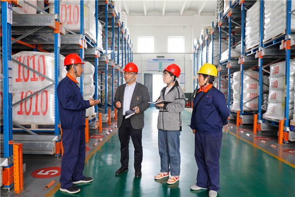 河南省平顶山市纪委监委聚焦大力实施产业体系融通、城市能级提升等工程,强化监督保障,助力加速推进产业转型升级。图为该市纪委监委干部深入企业一线,查访影响营商环境问题。 杨朝辉 摄