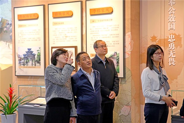 报告团成员鲍璐、魏国权、李志军、周莹(从左至右)在天府家风馆“先贤家风”展厅参观交流。 叶源昊/摄