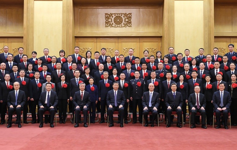 11月6日,党和国家领导人习近平、蔡奇、李希等在北京人民大会堂会见全国“枫桥式工作法”入选单位代表。 新华社记者 李学仁 摄