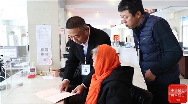黑龙江省双鸭山市集贤县纪委监委将纪检监察建议执行情况纳入政治生态考核、巡视巡察等监督考核体系,定期对纪检监察建议整改落实情况开展专项督导或“回头看”。图为集贤县纪检监察干部在县产权登记中心向群众了解办证情况。(黑龙江省双鸭山市集贤县纪委监委 邵井富 摄 )