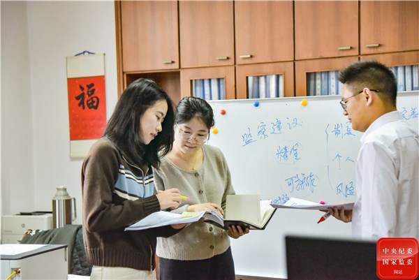 河南省舞钢市纪委监委对纪检监察建议的适用范围、文书格式、送达要求、跟踪检查等作出明确规定,全方位掌握被建议单位实际情况,发挥建议书的预警作用。图为该市纪检监察干部正在对办结案件进行分析研判,准备制发监察建议书。(河南省舞钢市纪委监委 朱莞尔 摄)