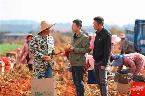 新年伊始,云南省陆良县纪委监委聚焦民生领域热点难点问题,组织纪检监察干部深入一线开展走访调研,近距离倾听群众心声,收集群众意见,推动解决群众身边急难愁盼问题。图为1月1日,该县小百户镇纪委干部在中坝村委会羊头山马铃薯种植区走访农户,了解惠农惠民政策落实等情况。(云南省陆良县纪委监委 王勇 摄)