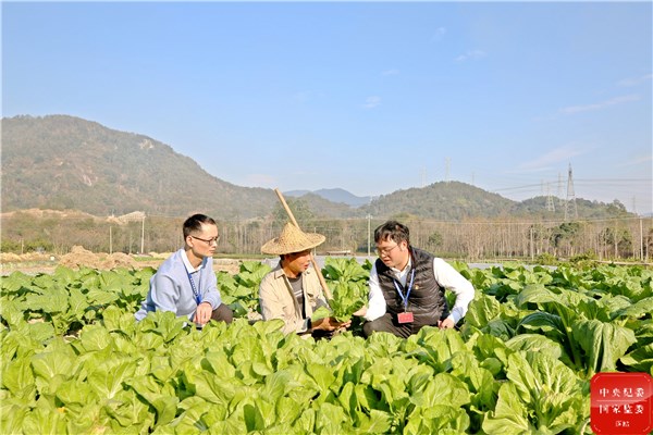 元旦假日期间,福建省福安市纪委监委“室组”联动,前往大型商超、农贸市场、蔬菜生产基地等进行监督检查,确保蔬菜价格稳定。图为该市纪检监察干部在溪潭镇仙石村蔬菜生产基地了解相关情况。(福建省福安市纪委监委 吴其文 摄)