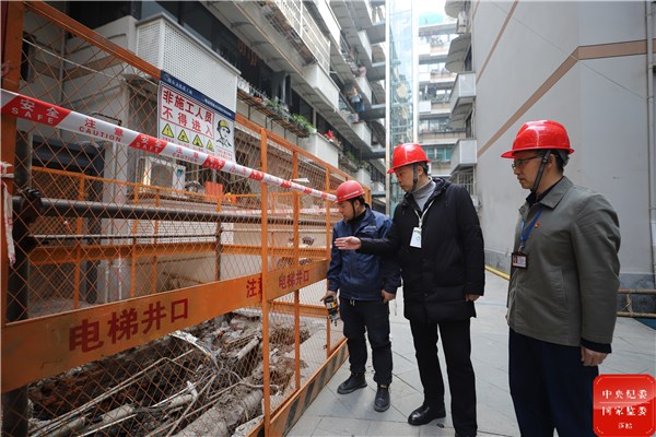 四川省成都市锦江区纪委监委聚焦安全生产工作加强监督,督促相关职能部门落实安全生产监管责任,拧紧“安全阀”。图为元旦假日期间,该区纪检监察干部深入辖区电梯施工安装现场了解有关情况。(四川省成都市锦江区纪委监委 封金剑 摄)