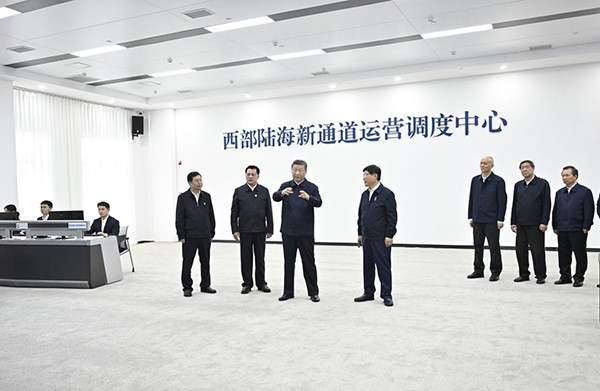 22日下午,习近平首先考察了重庆国际物流枢纽园区。他来到西部陆海新通道重庆无水港运营调度中心,听取新通道建设情况汇报。习近平强调,物流是实体经济的“筋络”。建设西部陆海新通道,对于推动形成“陆海内外联动、东西双向互济”的对外开放格局具有重要意义。各有关方面要齐心协力,把这一标志性项目建设好、运营好,带动西部和内陆地区高水平对外开放。物流园区要积极运用先进技术,不断创新联运模式,提高科学管理水平,在建设现代物流体系中发挥更大作用。