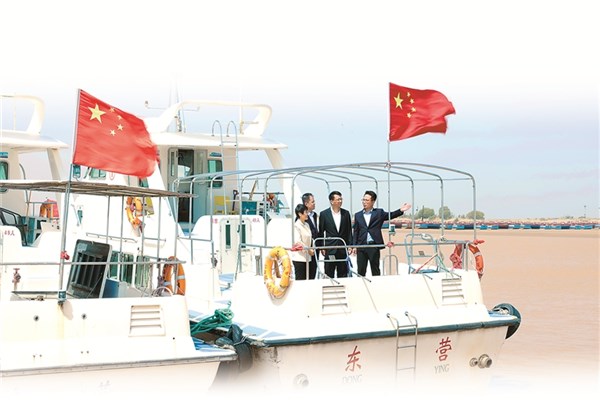 图①:近日,山东省东营市纪委监委干部在黄河三角洲国家级自然保护区了解相关工程推进情况。张增文 摄