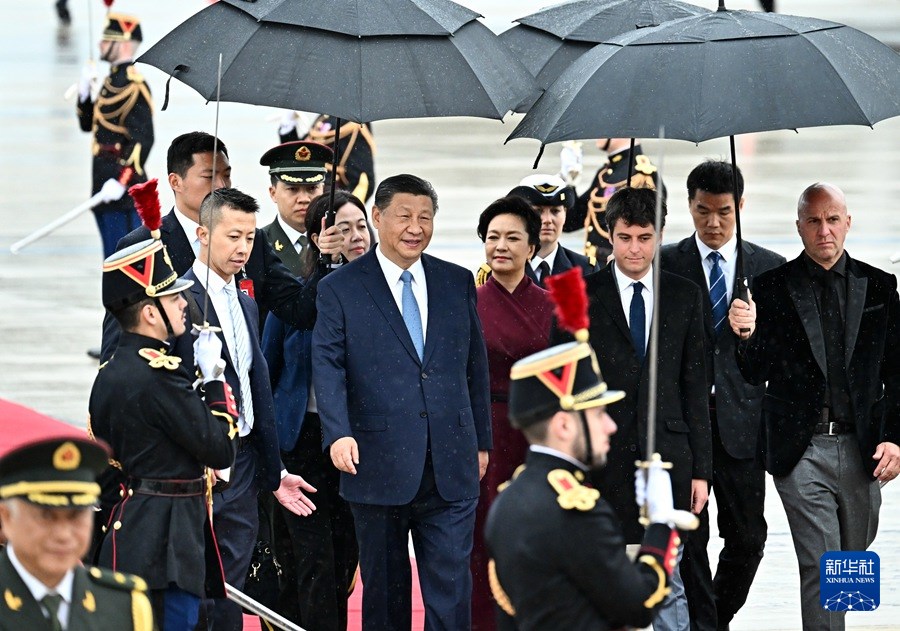 当地时间5月5日下午,国家主席习近平乘专机抵达巴黎,应法兰西共和国总统马克龙邀请,对法国进行国事访问。