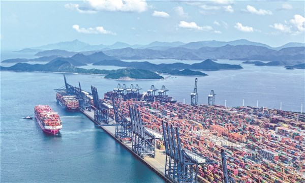 坚持党的领导是改革开放取得成功的根本保证。党的十八大以来,以习近平同志为核心的党中央创造性提出并深刻阐明全面深化改革的历史定位和重大意义,在新的历史起点上把新时代改革开放推向新境界。 推进粤港澳大湾区建设,承担着为全面深化改革向纵深推进、进一步扩大对外开放探路的时代重任。图为近日,作为粤港澳大湾区世界级航运枢纽的深圳盐田港,吞吐作业繁忙有序的景象。