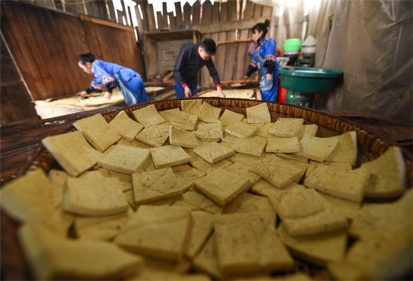 打糍粑,制作豆干、社饭,是贵州铜仁松桃苗族自治县农村最具特色的年味之一。图为松桃苗族自治县蓼皋街道村民在制作社饭。(贵州省铜仁市松桃苗族自治县纪委监委供 龙元彬 摄)