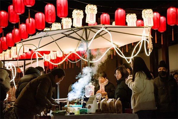 春节期间,浙江海宁各种“老底子”传统小吃和别致的现代美食精彩纷呈,集市昼夜热闹,来往的市民和游客过足了美食瘾。(浙江省嘉兴市海宁市纪委监委 王磊 摄)
