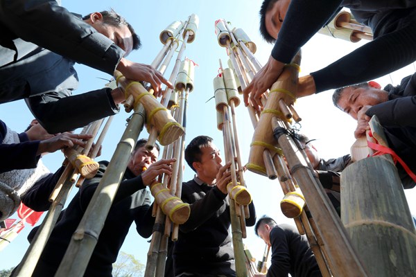 侗族群众欢聚一堂,开展侗族大歌、芦笙踩堂、侗族琵琶歌等侗族传统民俗活动,尽显民族风采。(广西壮族自治区三江侗族自治县纪委监委供 龚普康 摄)