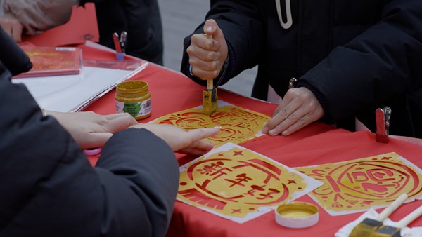 江苏省昆山市充分挖掘非遗资源,为在昆过年的市民、游客准备了非遗贺新春系列活动,让大家在浓浓的年味和浓厚的传统文化气息中一起过年。图为小朋友在张浦镇周巷社区活动现场体验拓印。(江苏省昆山市纪委监委供 周人杰 摄)