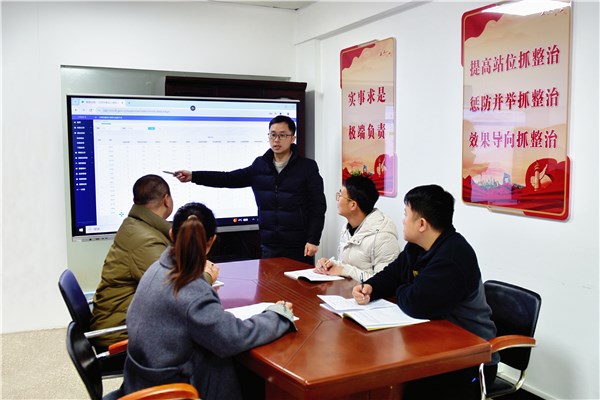 福建省尤溪县纪委监委着力将基层小微权力监督平台打造成群众的“掌上议事厅”。图为该县纪委监委党风政风监督室干部对2024年小微权力监督平台中群众诉求等情况进行梳理分析。(福建省尤溪县纪委监委供 张霓虹 摄)