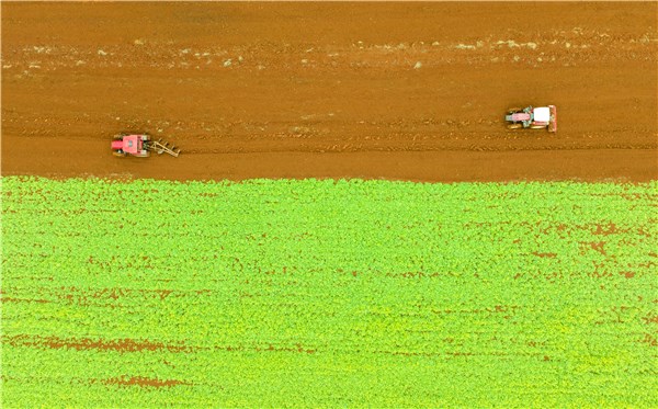 春耕时节,江西省宜春市樟树市农民抢抓农时开展农业生产,在红土地上耕耘新一年的希望。图为樟树市义成镇罗港村村民驾驶农机开始春耕。(江西省宜春市樟树市纪委监委供 周亮 摄)