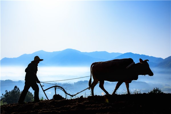 晨曦微露,山雾缭绕中,一位农人挥鞭驱赶着老黄牛,在田间缓缓犁地。泥土翻新,春意渐浓,人与牛的身影在朦胧中若隐若现,勾勒出一幅静谧而充满生机的农耕画卷。(安徽省绩溪县纪委监委供 曹怀海 摄)
