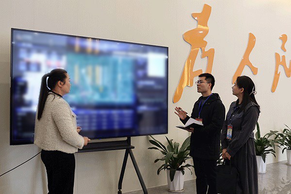 河南省新密市纪委监委搭建查询、比对、举报、监督为一体的智慧监督平台,通过数据碰撞比对,精准发现问题,提升基层监督质效。图为纪检监察干部通过智慧监督平台了解相关情况。(河南省新密市纪委监委 杨宗昊 摄)