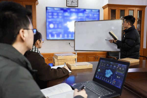 浙江省永康市纪委监委以构建数字纪检监察体系为统揽,紧盯重点领域、重点问题,靶向发力、攻坚突破,有效发挥大数据为纪检监察工作赋能作用。图为市纪委监委信息中心干部就相关模型开展研判分析。(浙江省永康市纪委监委 施静祎 摄)