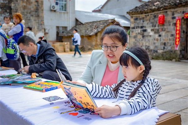 书香拂面四月天,在安徽省广德市举办的皖美阅读系列活动现场,年轻妈妈带着孩子共享美好阅读时光,让孩子们在亲子阅读中认识复杂美妙的世界,养成良好的阅读习惯。(安徽省宣城市广德市纪委监委供 胡六青 摄)