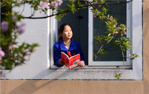 春读书,兴味长,磨其砚,笔花香。校园里,学生们捧起书本,春天的灵动与书卷的静谧相互映照,让人在阅读中真切感受到生命的蓬勃与希望。(浙江省永康市纪委监委供 张丽江 摄)