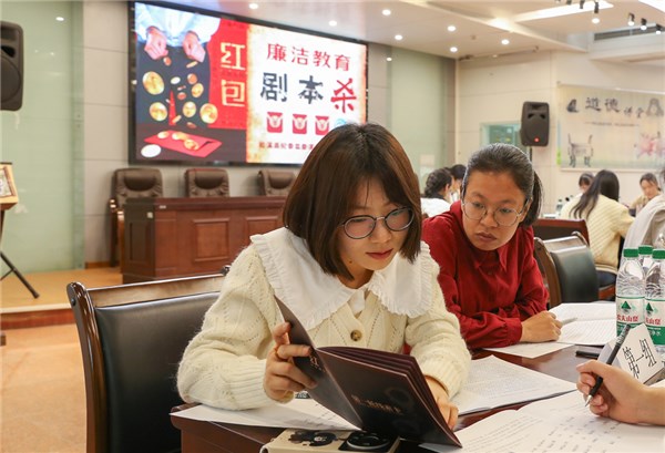 福建省松溪县纪委监委聚焦年轻干部纪律教育,创新教育载体、传播方式,通过角色扮演、推理互动等“沉浸式”体验,让年轻干部在剧情中感知纪律红线和廉政风险,引导年轻干部扣好廉洁从政“第一粒扣子”。图为活动现场年轻干部围绕剧情线索展开小组讨论。(福建省松溪县纪委监委 陈炊 摄)