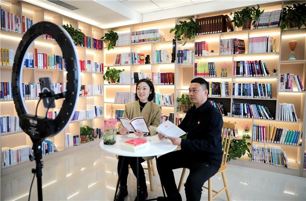 河南省新密市纪委监委不断丰富纪律教育形式载体,依托网络直播打造“云上”学习阵地,纪检监察干部“线上”解读新修订的《中国共产党纪律处分条例》,推进纪律教育入脑入心。图为该市纪检监察干部借助直播形式开设纪律教育“云课堂”。(河南省新密市纪委监委 杨宗昊 摄)