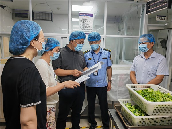 江苏省泰州市纪委监委紧盯“校园餐”领域不正之风和腐败问题,聚焦重点问题,开展专项整治。图为该市纪检监察机关联合相关部门到校园食堂开展监督检查。史胜涛 摄
