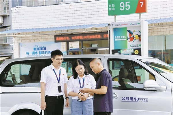 湖北省当阳市纪委监委深入推进风腐同查同治,紧盯违规使用公车、违规吃喝、违规收送礼品礼金等作风顽疾开展监督检查,在及时查处作风问题的同时,循线深挖腐败问题,推动标本兼治、系统施治。图为近日,该市纪检监察干部在辖区内加油站了解有关情况。秦宇聪 摄