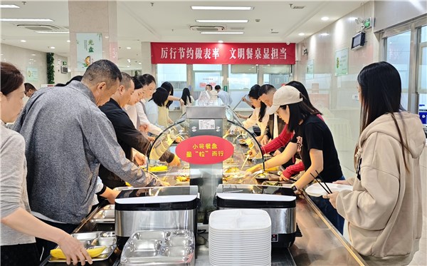 四川省成都市成华区从机关食堂和就餐人员双向发力,在全区机关食堂开展厉行节约倡议活动,通过提供大小餐盘、实行自助用餐、推行“光盘行动”等方式,号召就餐人员量“粒”而行。(四川省成都市成华区纪委监委供 彭蕊 摄)