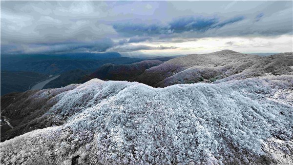 小雪时节,秦巴山脉苍茫壮阔,云雾翻涌间,积雪覆盖的山峦如银蛇舞动,山脚下的汉江若隐若现,尽显冬日山河的磅礴与诗意。(陕西省石泉县纪委监委供 董长松 摄)
