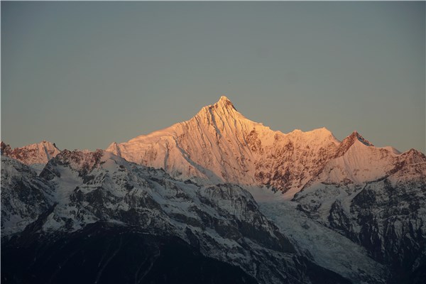 大雪时节到来,云南省迪庆藏族自治州德钦县的梅里雪山已披上洁白的“冬衣”,云岭之巅,日照金山。(云南省迪庆藏族自治州德钦县纪委监委供 斯娜卓玛 摄)