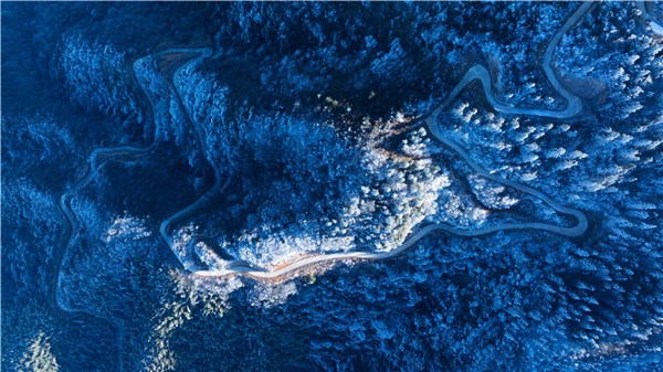 大雪时节,寒流凝华。雾凇凝成琼枝,与翻涌的云海交织出蓝白画卷,定格冬日里清透又柔和的好风光。(安徽省绩溪县纪委监委供 傅忠翛 摄)