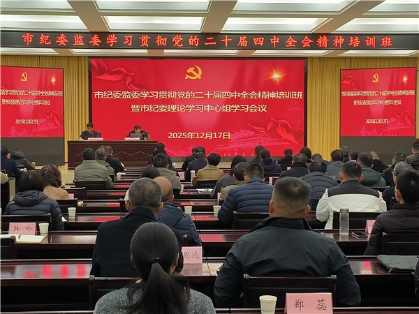 12月17日上午,市纪委监委举办学习贯彻党的二十届四中全会精神培训班暨市纪委理论学习中心组(扩大)学习会议,邀请中共宣城市委党校副教授、宣城市党建研究会副会长王天云讲授《奋力开创中国式现代化建设新局面——深入学习贯彻党的二十届四中全会精神》课程,从准确识变、科学应变等四个角度详细解读了党的二十届四中全会精神,让全体参会人员更加深刻领会党的二十届四中全会丰富内涵和精神要义。市纪委监委领导班子成员,市纪委监委机关全体人员,市委巡察办及市委巡察办全体人员,市纪委监委各派驻(出)机构及宣城职业技术学院纪委、市人民医院纪委、宣城中学纪委和市属国有企业纪委全体人员共140人参加了培训。市纪委常务副书记、监委副主任施训陆主持会议并讲话。