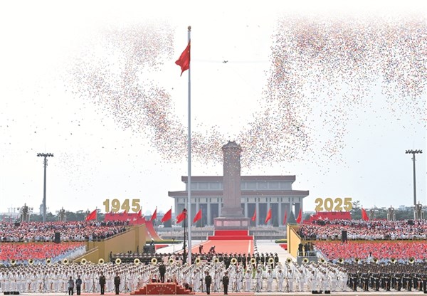 2025年9月3日,纪念中国人民抗日战争暨世界反法西斯战争胜利80周年大会在北京隆重举行。宽阔的长安街向远处延伸,以“复兴”命名的道路平直如砥。受阅官兵如钢铁洪流般浩荡前进,昂首挺胸、步履铿锵,雄姿英发、威震寰宇。胜利的荣光、前行的伟力、未来的希望,汇聚成昂扬的旋律,激荡回响于神州大地。