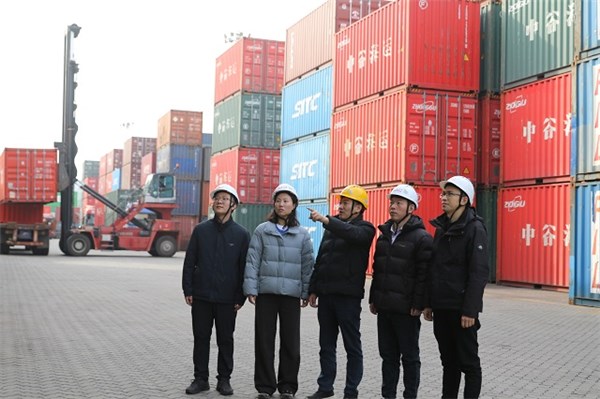 江苏省淮安市纪委监委组织纪检监察干部深入淮河入海水道二期、淮安港三期、淮安涟水国际机场三期等交通枢纽工程现场调研走访,推动解决相关问题,助力扩大高水平对外开放。图为近日,该市纪检监察干部走访了解淮安港枢纽运行情况,推动铁水联运项目加快建设。蔡百灵 摄
