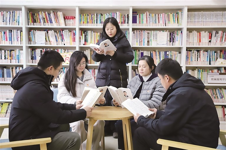 江苏省南京市溧水区纪委监委通过加强理论学习,教育引导纪检监察干部锤炼政治品格,做到忠诚干净担当。图为该区青年纪检监察干部在学习《习近平谈治国理政》第五卷。戴国阳 摄