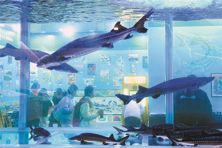 图为近日,观众在全国农业展览馆观看“生命长江 生生不息——长江禁渔五年展”。 图片来源:视觉中国